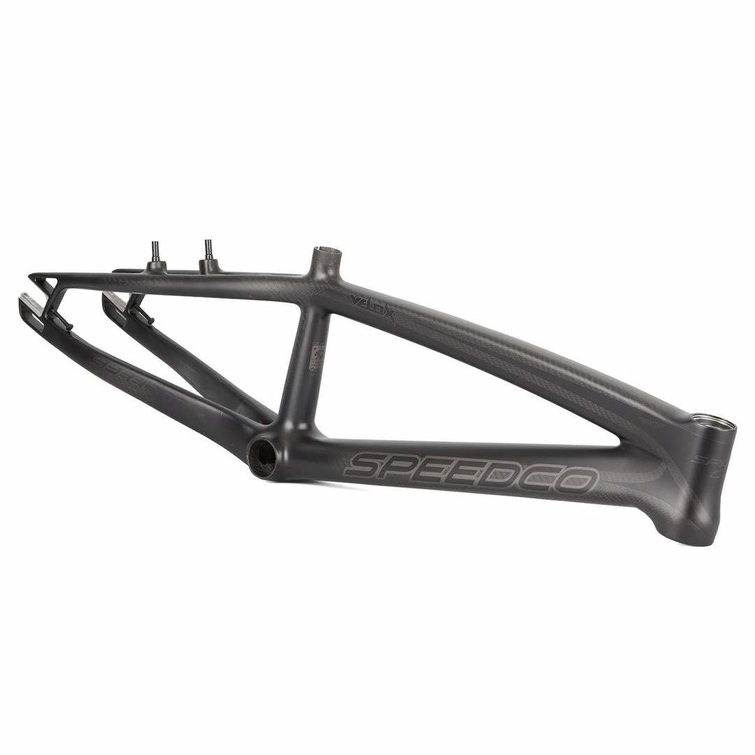 The Speedco Bicycles Velox v2 Carbon Fiber Race Frames feature T700 Toray carbon fiber, the highest strength carbon for BMX frames. The use of this material allows the Velox to maximize rigidity and strength while keeping it one of the lightest race frames on the market today. The Speedco Velox delivers 3 new sizes for the v2 model, including the Pro XL-L and Pro XXL with an extended 15.25″ rear chainstay as well as the addition of a 22″ top tube Pro XXXL.