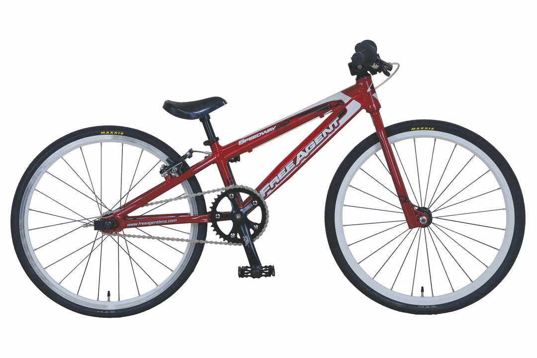 The Free Agent 2017 Speedway Mini BMX Bike-Team Red is the perfect combination of performance and affordability. With sealed bearing hubs, integrated headset, double wall rims and great components from brands like KMC, Wellgo and Maxxis, this is a value BMX racing bike that shouldn’t be overlooked.
