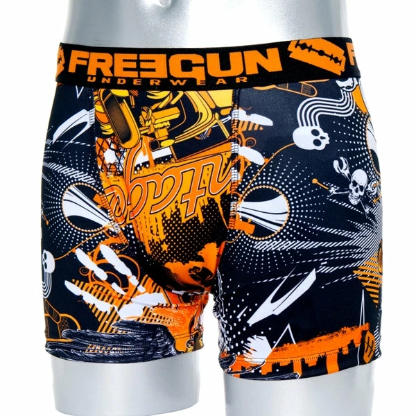 This Freegun Boxer offers a perfect fit with an orange skull design, breathable and quick-drying microfiber soft stretched fabric blend and a 100% cotton lining. The wide and flexible Freegun waistband with a centered tag at the back makes it even more fun to wear. This boxer is an entirely new level of comfort and will quickly become the only underwear you will ever want to wear!