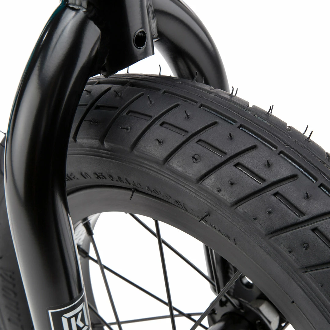Coming in the rad Gloss Atomic Blue colorway, the Coast is kitted with some great BMX style parts. The miniaturized 5” Kink Puma CC bars, 12” Kink Lance forks, and Mission X7 20-hole rims, all adapt BMX components to the right size and dimensions to comfortably fit a child’s needs. The ultra-low standover height allows the seat to be dropped even lower for kids to get rolling as soon as possible.