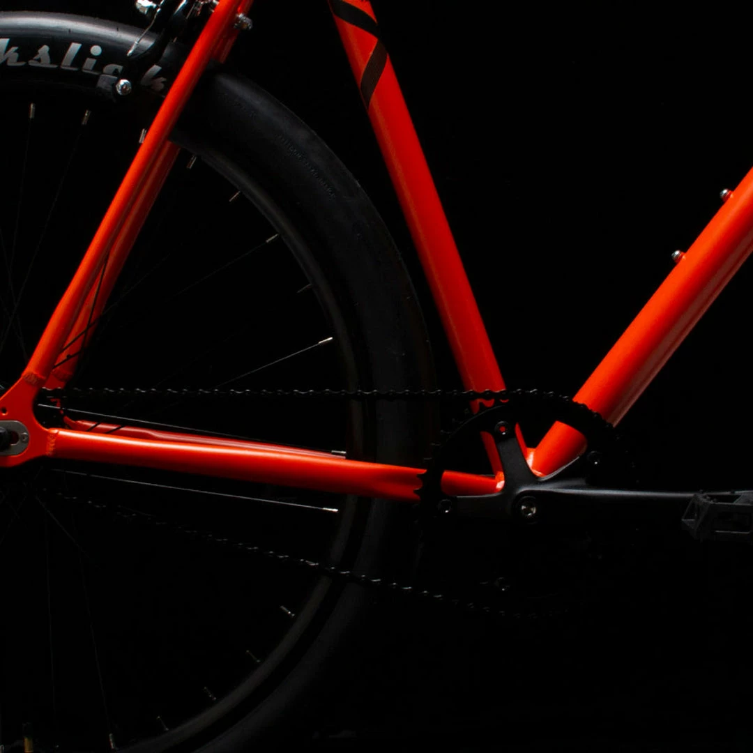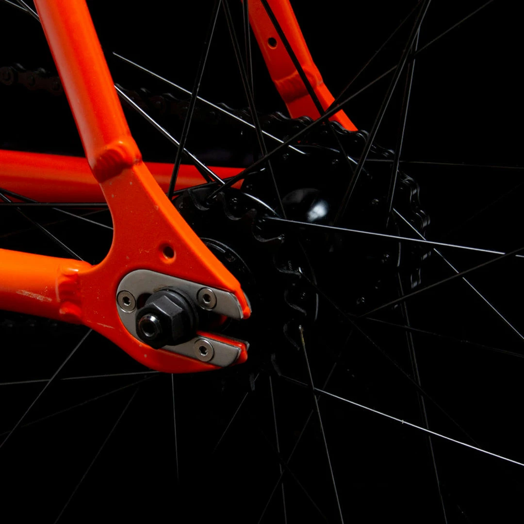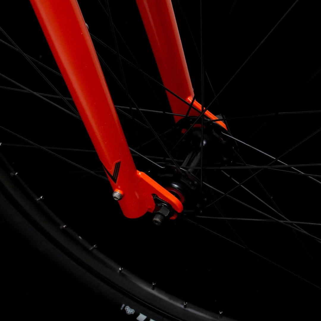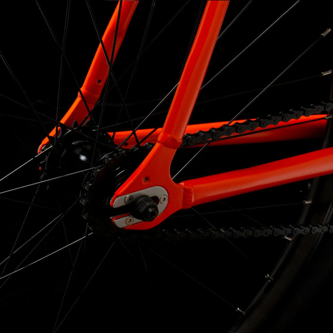 The Verde Vario 650b L 27.5″ BMX Freestyle Bike-Orange is a fully realized street machine great for ripping around the urban (or suburban!) environment. This is the Large size of the Vario 650b with a 22.75” top tube over the S/M size’s 21.5”. The standover height is the other big difference between sizes. The Large has a 32.75” standover height versus the S/M with 30.75”. We are huge fans of this orange colorway paired with the WTB Thick Slick tires on black aluminum rims with black spokes and silver nipples. Simply classic. The frame and fork is ready to go with mounts for water bottle and racks. A bike of such high caliber of course comes with sealed hubs and bottom bracket. A nice touch is the flip flop rear hub so you can go freecoaster or fixed gear depending on your style.