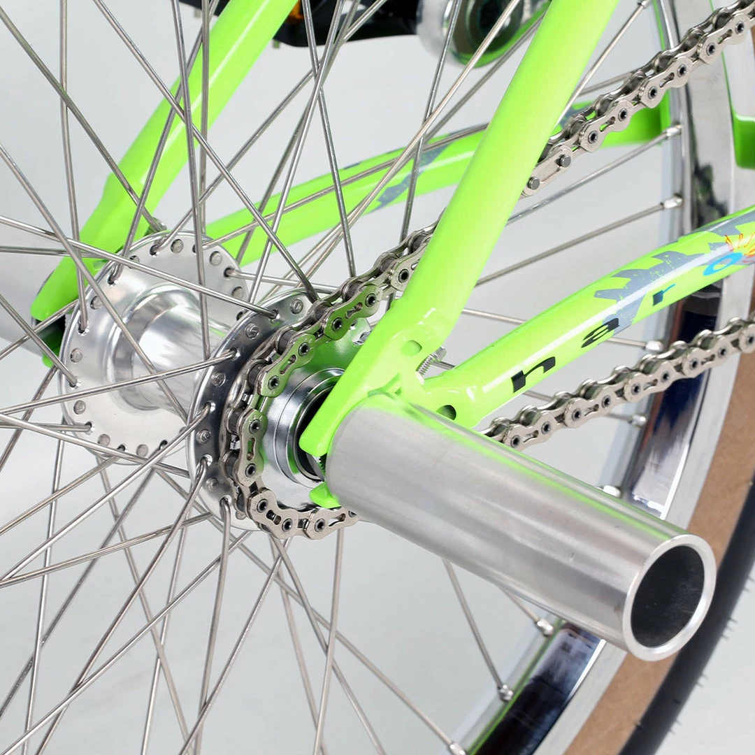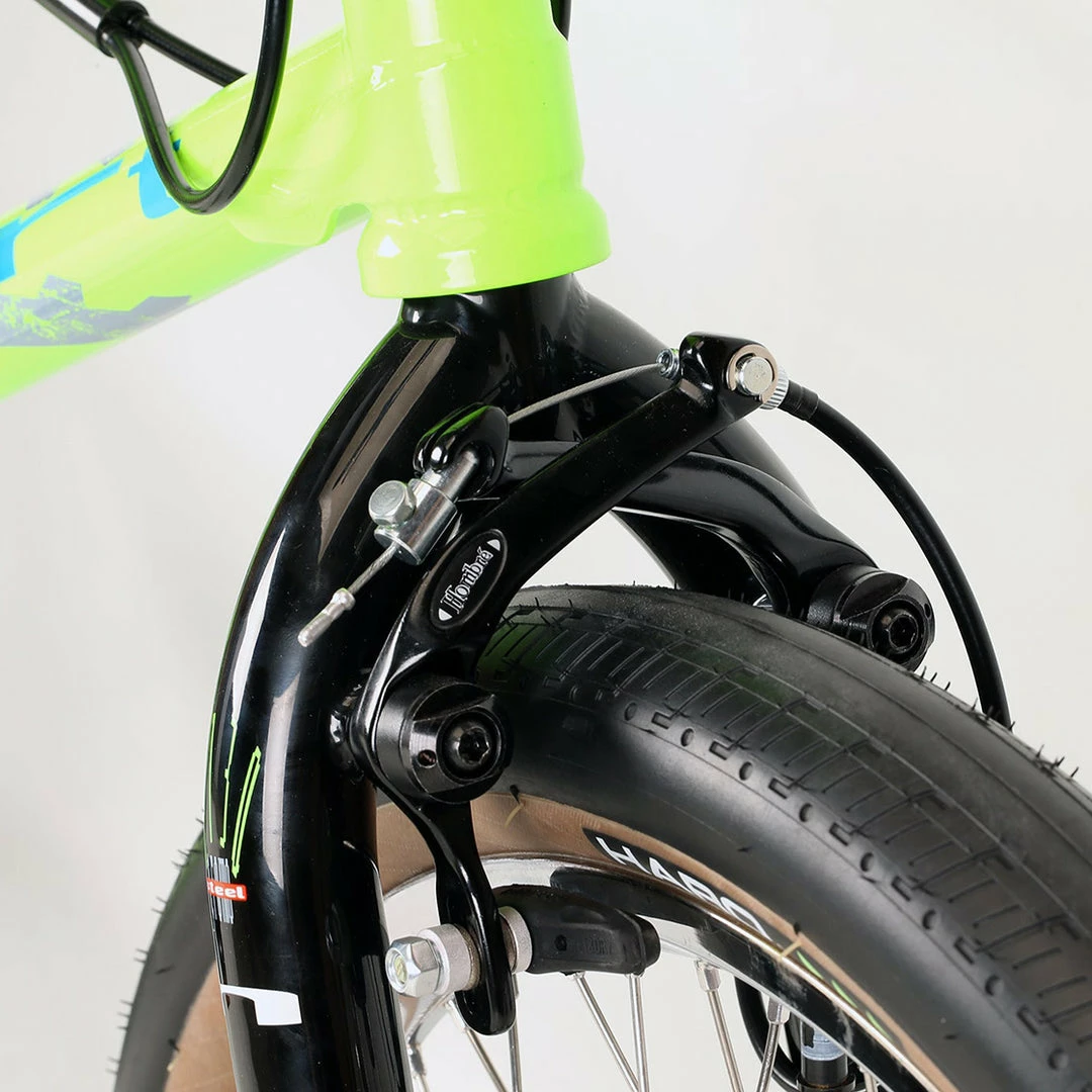 The Haro Lineage Sport Bashguard 21in TT BMX Freestyle Bike-Neon Green at J&R Bicycles is a look to the past with its tires firmly planted in the present. Imagine the incredible bikes from the golden age but made with today’s technology and manufacturing perfection. From the alloy gyro with Teflon bearing to the four-piece kneesaver bars and the throwback pedals you will be the envy of all the land. The bike doesn’t just look pretty, it is in fact about as high end as you can get with a complete freestyle bike.
