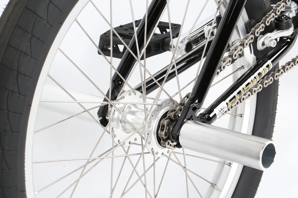 - HUBS: Front: 36H Lineage high flange sealed w/ 3/8″ straight axle Rear: 36H Lineage high flange sealed w/14mm axle & 9T driver