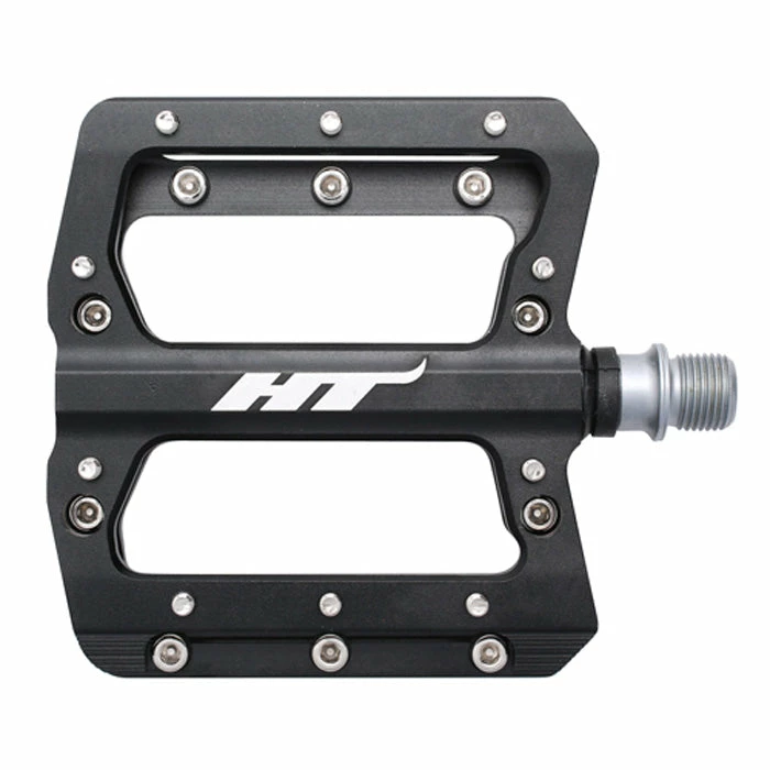The HT AN14A Nano Platform BMX Pedals are CNC machined aluminum pedals that feature a chromoly spindle. With its smaller platform (94mm x 95mm x 17mm) providing for better ground clearance, the pedals also feature replaceable pins to help extend their life. Weighing in at only 475g, these lightweight yet durable pedals will translate your power to the cranks with reliability and consistency.
