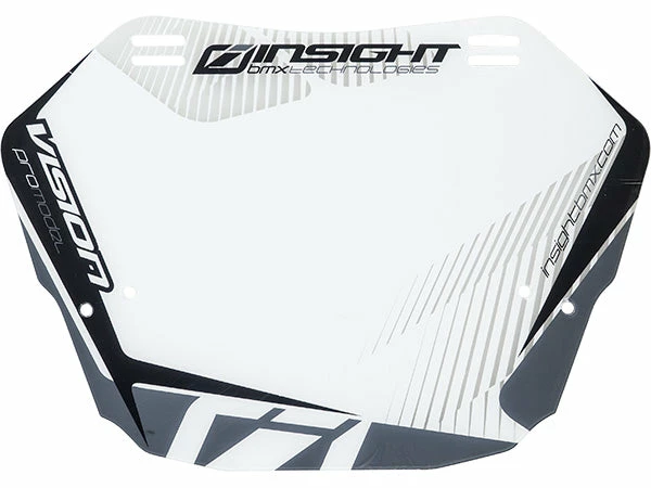 The Insight Vision number plate features durable and flexible Lexan material with reverse laminate graphic protection. Includes Zip-Ties and Velcro strips for fast and easy installation. Typically the Mini plate fits perfectly on 6.5″ bars or smaller. For bars taller than 6.5″ use the “Pro” size plate.
