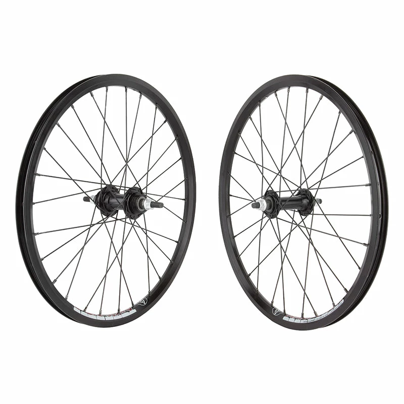 The Wheel Master Alloy BMX Wheelset – 18″ x 1 1/8″ features Wheel Master 28H hubs and Alienation Anklebiter Rims.