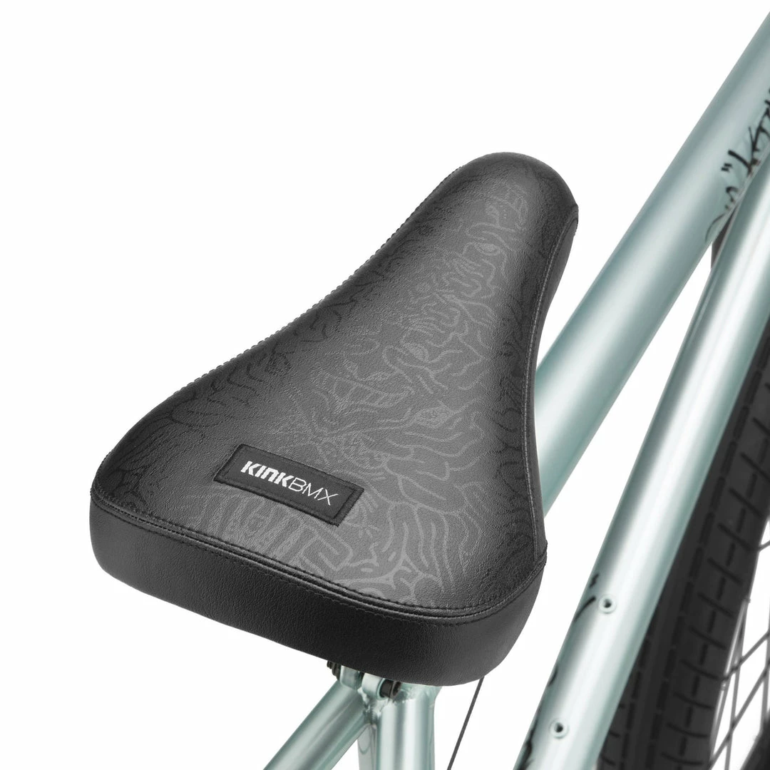 Despite its popularity, the Kink 2021 Drifter 26″ BMX Bike-Gloss Mirror Green is our only 26” bike. Kink BMX is a BMX brand, through and through, and the Drifter is truly an extension of that. This bike is for the BMX dad whose back has seen better days, but he’s still not afraid to jump a curb or two. It’s for riding to school or work when the 20” wheels aren’t so practical. The Drifter is for having fun on your bike and ripping a timeless skid. The Drifter uses all standard BMX specs and components, which makes things super easy to maintain and gives the bike an extremely natural feel to a BMXer. The Gloss Mirror Green colorway really shines and is complimented with a matte black aluminum headtube badge.