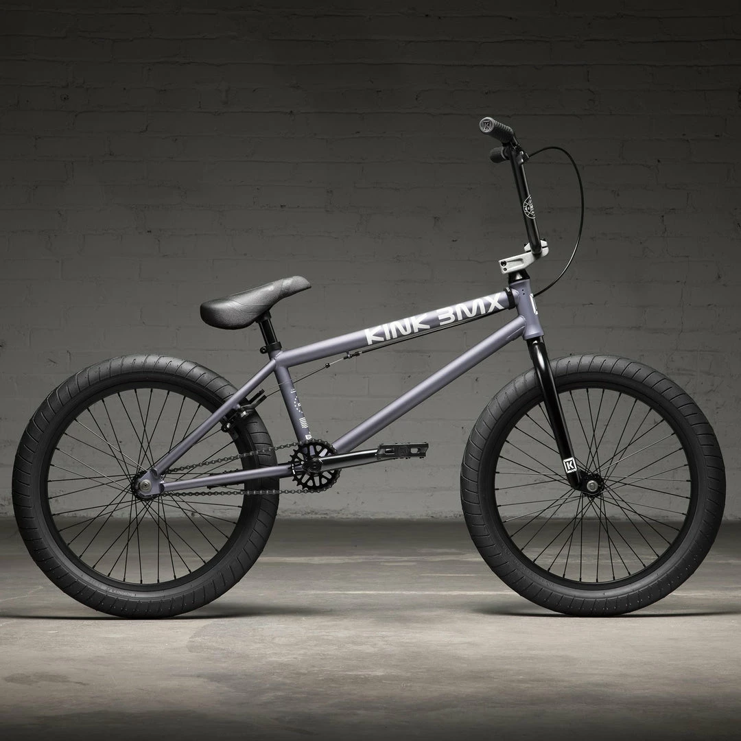 The Kink 2022 Launch 20.25″TT BMX Freestyle Bike-Matte Storm Grey is really a great value for the price point. The headset and bottom bracket are both sealed. Components include Kink Stryker forks, Kink T875 bars, and Mission Triumph 3 piece Cr-Mo cranks. The bike is designed and priced with the rookie rider in mind.