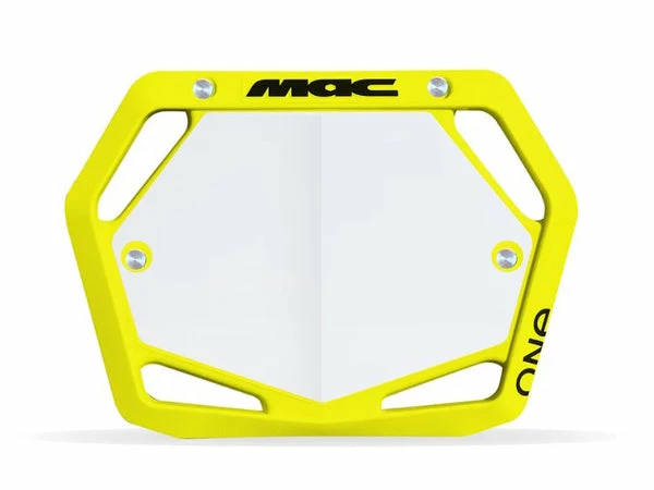 The Mac ONE Pro number plate is ready to add your own race sticker, available in 9 cool colourways. Produced out of a flexible plastic blend material and featuring a BMX first, bottom adjustable bar tab slots. All Mac plates include velcro and custom CNC alloy fasteners. Proudly Designed and Made in Australia.