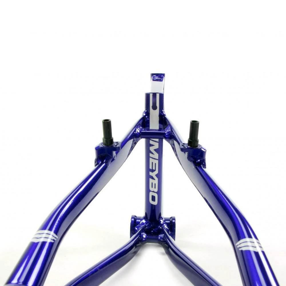 The Meybo Bicycles Holeshot BMX race frames are constructed out of 6061 T-6 aluminum tubing that is square tapered and multi-butted for the ultimate strength and rigidity while keep the frame light and aggressive. The Meybo Bicycle line of Holeshot frames are the official race frame of the Dutch National Team and the performance has been proven on tracks around the world.