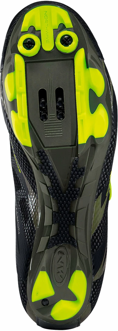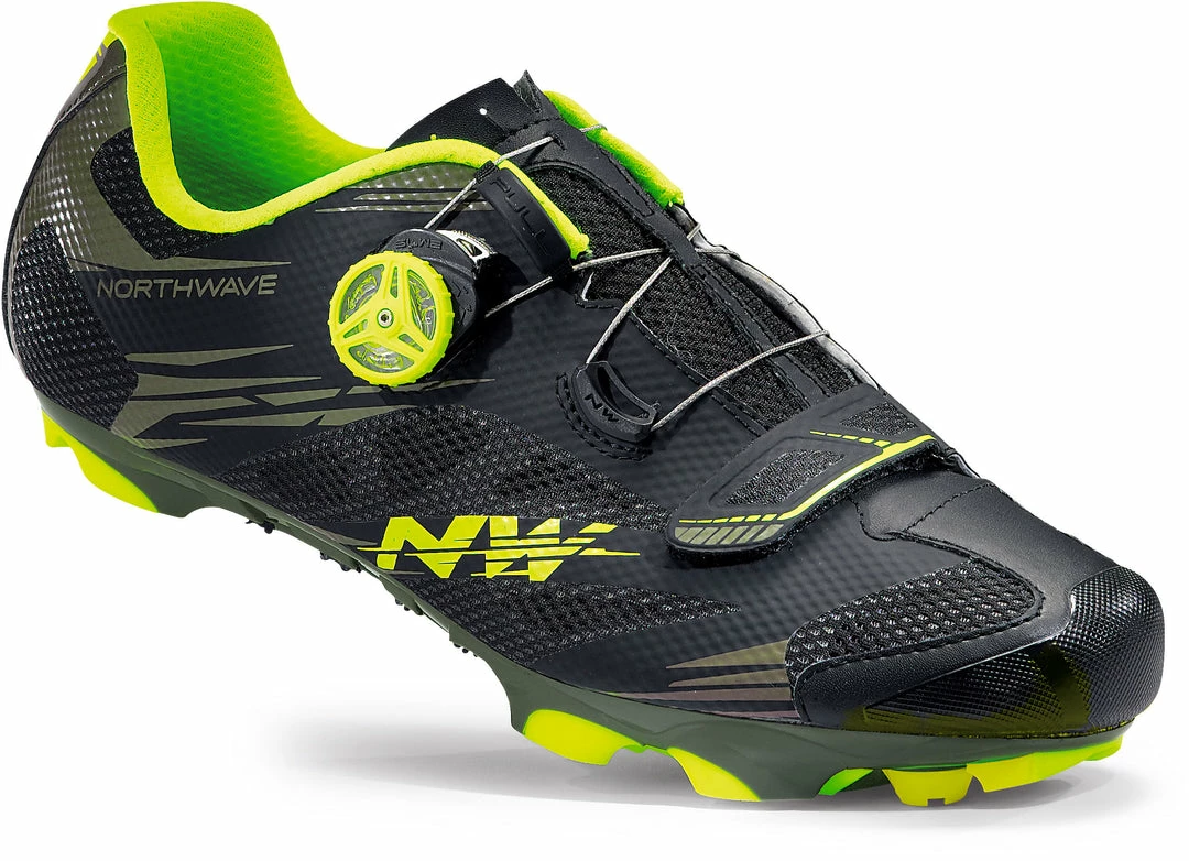 The Northwave Scorpius 2 Plus Clipless Shoes-Military Black/Flo Yellow offer the ultimate in breathability, lightness and stiffness at a remarkably competitive price.