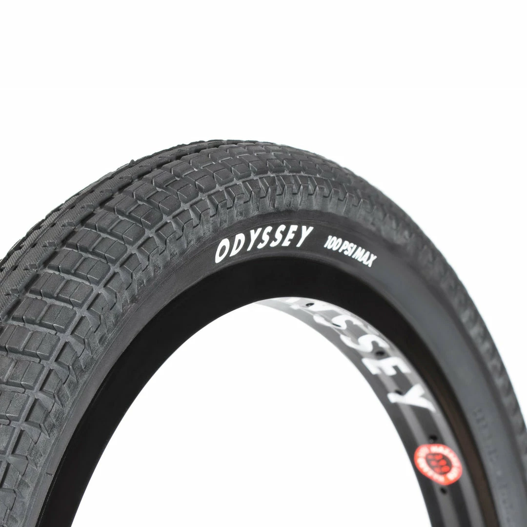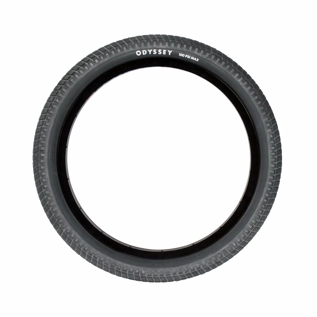The Odyssey Aitken V2 Tire-Wire-20×2.1in at J&R Bicycles is the signature tire of legendary shredder Mike Aitken featuring low-profile tread for all terrains. While the low-profile tread makes the Aitken tire perfect for speed on the street, dirt or parks the micro-knurling adds extra grip and traction. The dual-ply sidewall adds strength and durability for long-lasting shredding.