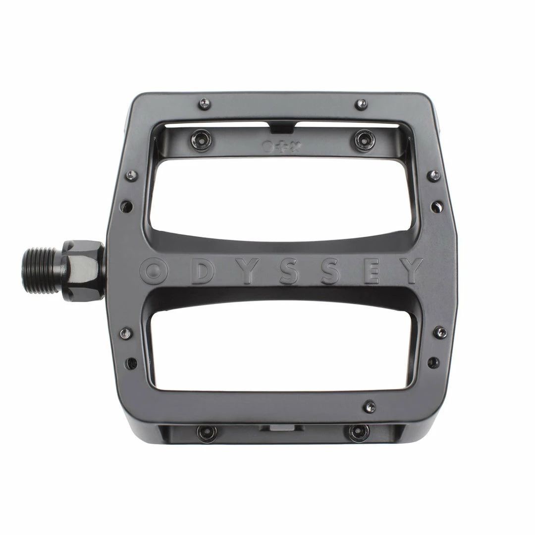 While maintaining the slim profile, wide platform, yet genuinely thin 17mm body of the original Grandstand pedal, the Odyssey Grandstand V2 Alloy Tom Dugan Platform Pedals comes with an updated bushing system to reduce axial pedal movement.