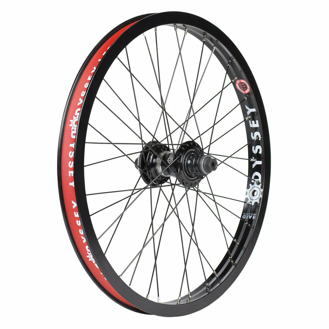 The Odyssey Hazard Lite Rear Freecoaster Wheel-RHD-Black uses their Clutch V2 Freecoaster Hub inside a Hazard Lite Rim. An access hole allows for fast and easy slack adjustments. One end of the 14mm axle is covered by a removeable plastic hub guard. The rim is all aluminum.