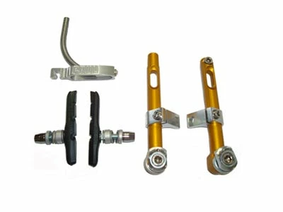 ADJUSTABILITY- Collar adjustment serves all pad adjustment functions [pad height, pad toe-in], Spring cap tension adjustment, Reversible calipers to pull from left or right