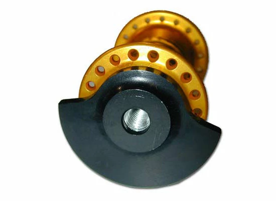 Solid aluminum machined hub guard, cut out for the front fork. Designed for PROFILE mini front hubs only. This will not work on MADERA front hubs!