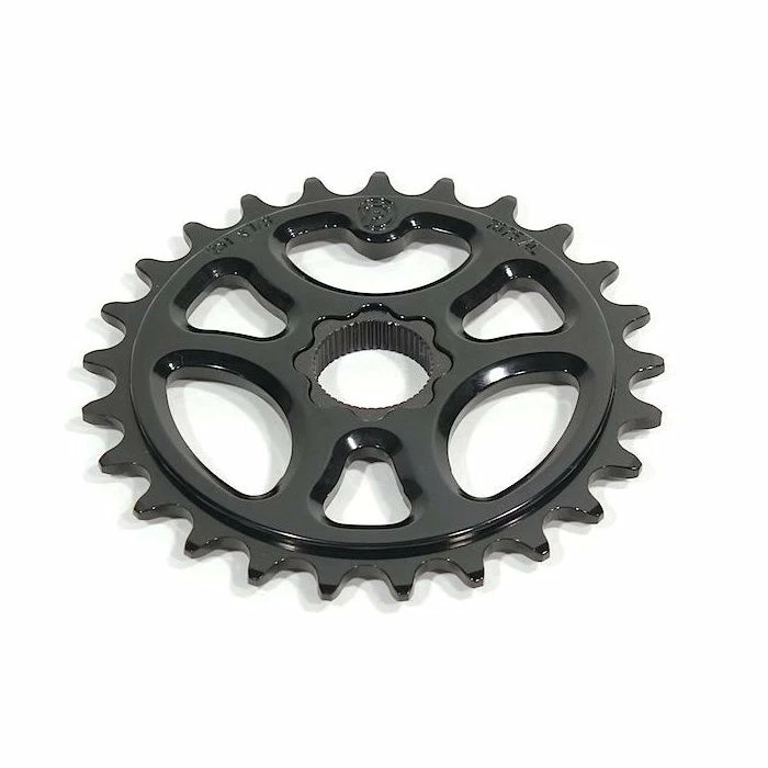 The Profile Galaxy Spline-Drive Sprocket is CNC machined from 7075 Aluminum in the USA. A great feature is it requires no sprocket bolt. Instead, it has a hardened CrMo steel insert matching up to the 48 splines on the crank axle for pure, direct power transfer. It is Available for 22mm splined axles only. The -1/8″ tooth width for use with most freestyle/street and single speed chains. It is supplied with a 22mm splined steel insert. Always pay attention to your sprocket and make sure the teeth aren’t worn or clingy otherwise it might be noisy and time for a new one.