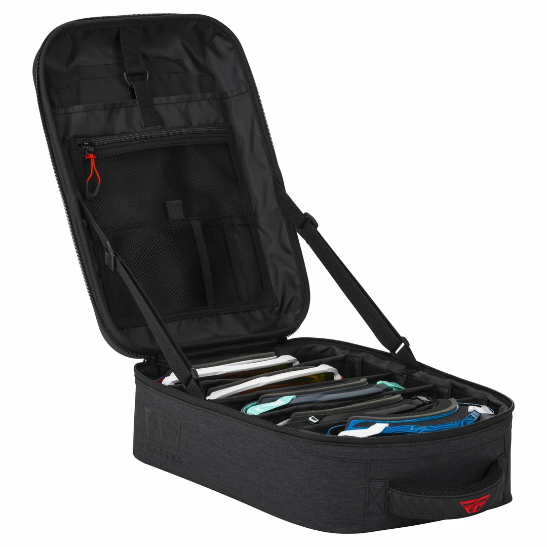 The Fly Racing Goggle Garage-Black is the perfect way to organize all those goggles that have been tumbling around inside your bag. Will store up to five goggles and five lenses and keep them as scratch free as possible. Don’t have a buncha goggles, have a quiver of goggles ready to go whenever you need them.