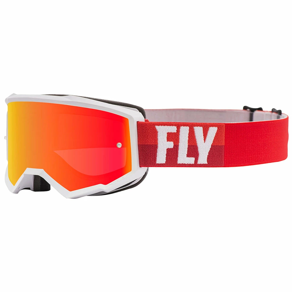 Fly Racing Zone Goggles-White/Red W/Red Mirror/Brown Lens are designed to provide lots of peripheral vision and still fit properly while wearing a helmet. There are built in tear-off posts and the strap has a non-slip inner surface to ensure it doesn’t slide around on the back of your helmet while the anti-fog coating keeps you focused on the finish line even under the most tropical of conditions. Included is a sweet microfiber bag.
