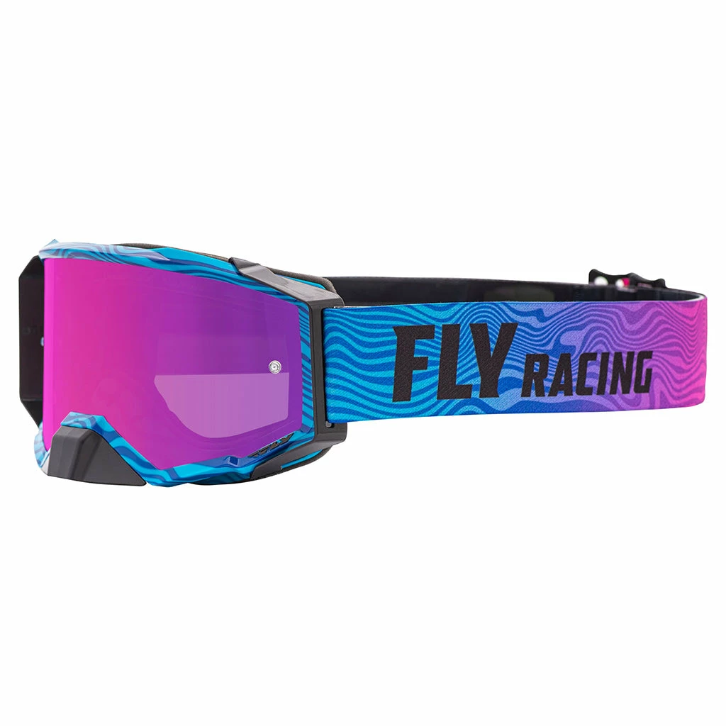 Fly Racing Zone Pro Goggles-Pink/Blue W/Pink Mirror/Smoke Lens-Adult have a frame designed with Outriggers that not only give a superior fit while wearing a helmet, but also provide excellent peripheral vision. The strap has a silicone inner layer so it wont be sliding down your helmet. The lens is anti-scratch and fog with pre-installed tearoff posts. A removeable Fly noseguard and microfiber storage bag is included. These are Fly’s best goggles and were created with world-class riders in mind so you can feel confident you’ll hit your potential.