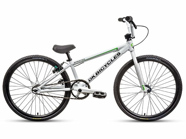 The DK Bicycle 2014 Sprinter Junior BMX bike is one of the most affordable yet competitive race bikes on the market with 6061 aluminum frame, sealed integrated headset, sealed flip-flop hubs, double wall alloy rims, Tektro brakes and Maxxis tires.