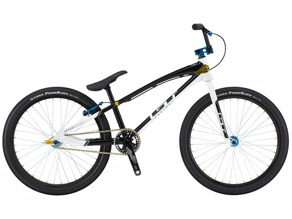 The 2014 GT Speed Series Pro 24″ BMX race cruiser is a top of the line racing machine featuring the Speed Series frame, 100% chromoly race fork, FSA Assault GT Wing logo hollow forged 2-pc cranks, sealed BB20 bottom bracket, 120 point engagement sealed cassette hub, sealed front hub, Alienation double wall rims and much more.