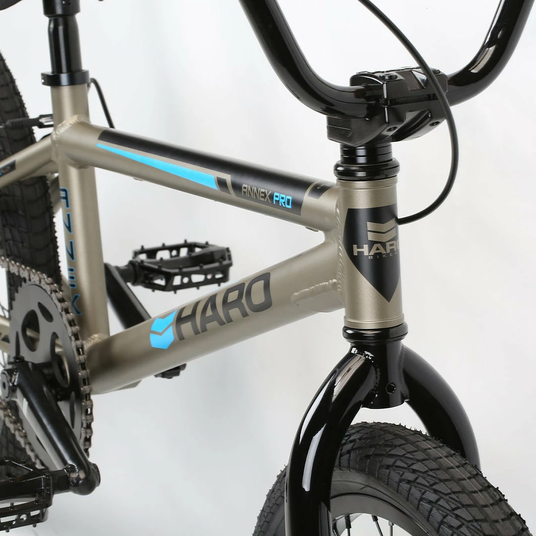 The Annex Pro model takes things to the next level in multiple ways. Starting off with a 20.5″ top tube 6061 alloy frame which has larger geometry and tubing than that found on the Expert model. 8″ rise bars and 100% chromoly fork with 1 1/8″ steer tube provide adequate size and strength for proper front end control. The Annex Pro also comes with 175mm 3 piece chromoly cranks and full sized 20″ 36 spoke alloy wheels which increase strength and are versatile for riding/racing at the BMX track and all around riding.