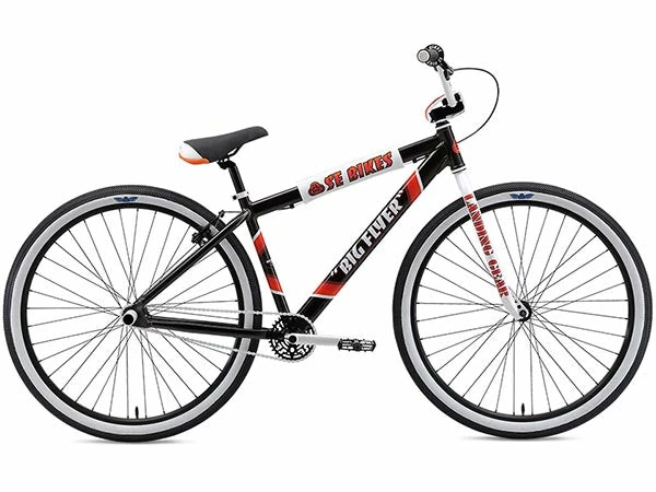 The SE Racing Big Flyer 29” Bike-Black Sparkle came onto the scene like a gangbuster last year! Within a matter of months, this new bike became king of the streets. You’ll be stoked to find out that this year’s bike is tougher than ever. The fork has been upgraded to super-strong chromoly steel tubing, and the rear wheel now features a sealed bearing rear hub. Once again, “We Make It Happen.”