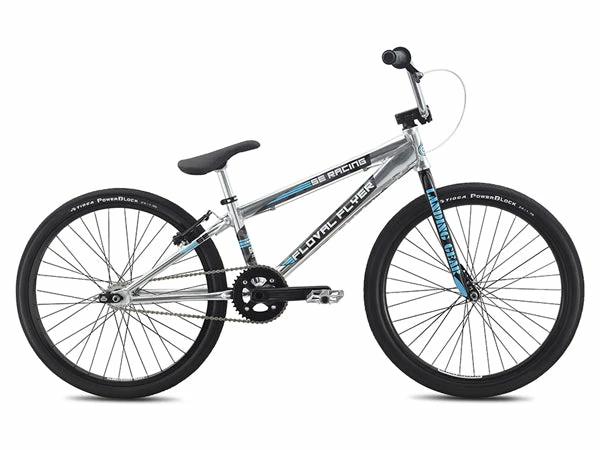 The SE Racing 2015 Floval Flyer 24″ complete bike features a 6066 alloy frame that is built with a super-stiff bi-oval downtube, internally machined integrated head tube, and 3D-forged dropouts. And the parts line-up is top notch with Alienation rims, Promax brakes & levers, Tioga Powerblock tires, and a super lightweight Pivotal seat & seatpost.