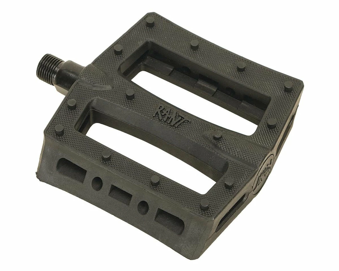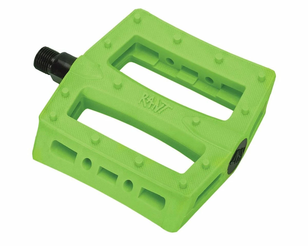The new Rant Shred Pedal offers a wide and stable concave platform, molded from a durable reinforced nylon composite material. The bodies feature 14 molded pins per side with intricate micro knurling to maximize traction. Pedal life is extended by the strategic placement and use of material. All spinning on 4140 heat-treated chromoly axles and precision loose ball bearings. Long-lasting and lightweight – go ahead and Shred!