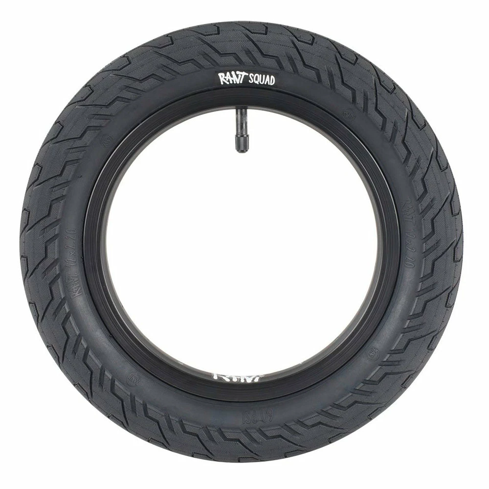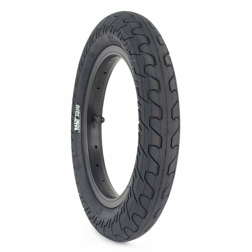 The Rant Squad Tire-12×2.20″-Black is a multi-use designed tire for the dirt, park or street. With an exclusive tread pattern, Rant has also included a micro-knurled surface for that bite right when you need it. Medium pressure tire helps give some cushion on impact from drops and landings.