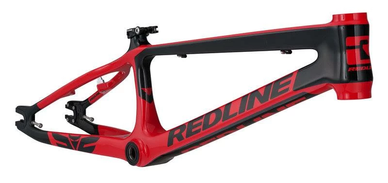 The Redline Flight Team Carbon BMX Frame-Gloss Red/Black is engineered for the highest levels of BMX racing. Lightweight Redline Carbon Technology (RCT) frame material, press-fit BB -86, Redline convertible dropouts and proven geometry make this a winning frame on every level.