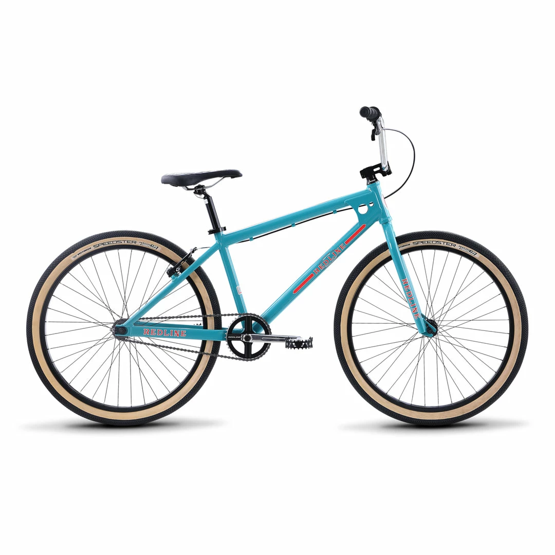 The Redline SQB-26 26″ BMX Freestyle Bike-Turquoise is a nod to our very first production BMX bike, the Squareback. It features an aluminum alloy frame and a full chromoly steel fork. Vintage-style graphics, double head tube gussets, and the V-shaped handlebar let you roll around town in retro style. You can also bust out a few laps at your local track, thanks to the race-worthy components, including Flight cranks, a Redline Sport saddle, and Vee Speedster 26×2.125 inch tires.
