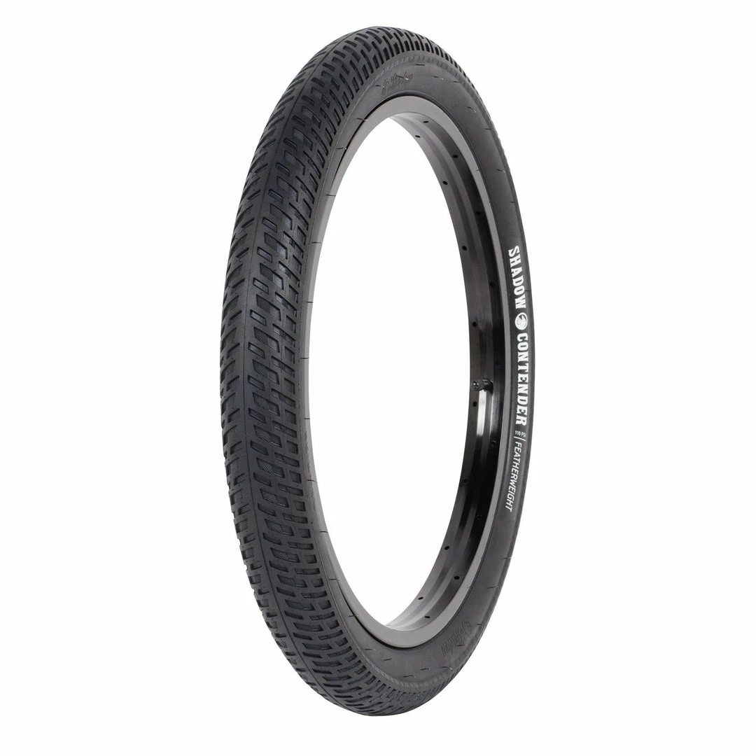 The “lighter” version of the Contender line of tires, the Shadow Conspiracy Featherweight Tire features a puncture resistant “skinwall” side wall, 120TPI casing, and a folding bead for a lightweight, yet durable tire. With a smooth centerline, the Featherweight features a specially designed “cut out” tread pattern that offers quick roll on the concrete, ramp, or dirt, but still giving you that sticky grip needed for tight turning and bowl carving.