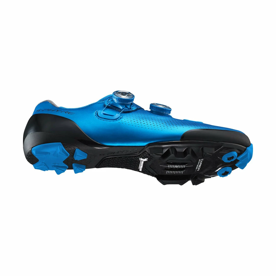 The Shimano 2019 S-Phyre XC-9 Clipless Shoes-Blue are the pinnacle of off-road competition footwear, offering the best of the best in clipless shoe technology for BMX, Mountain Biking or both.