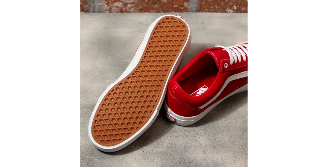 The Vans Old Skool Pro Suede Shoe-Red/White, a Vans classic upgraded for enhanced performance, features sturdy canvas and suede uppers, single-wrap foxing tape, enhanced footbeds for superior cushioning and impact protection, and Vans original waffle outsoles made of a rubber that offers grip and support. The Old Skool Pro also includes DURACAP reinforcement rubber underlays in high wear areas for unrivaled durability, and Pro Vulc Lite construction to deliver the best in board and pedal feel, flex, and traction.
