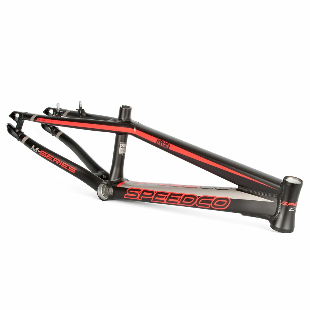 The M2 line of alloy frames is aesthetically designed to replicate Speedco’s Flagship model, the Velox Carbon. The custom 7005 series alloy tubeset on the M2 frames are heat treated and double-butted for weight reduction and increased strength. The down-tube on the M2 line is oversized and tapered slightly throughout the sizes to enhance response and ensure that riders of all sizes benefit from the maximum rigidity for their body weight. The chain-stay width follows suit as these bikes were built to sprint, and peak performance out of the gate and corners under high power output is top priority in the M2. Lastly, an integrated chain tensioner system is seamless throughout the 16 sizes in the M2 line and will keep the rear wheel locked in under the highest wattage output you can only dream of. Do you have what it takes to put the most responsive alloy bike you’ve ever ridden through it’s proper paces?