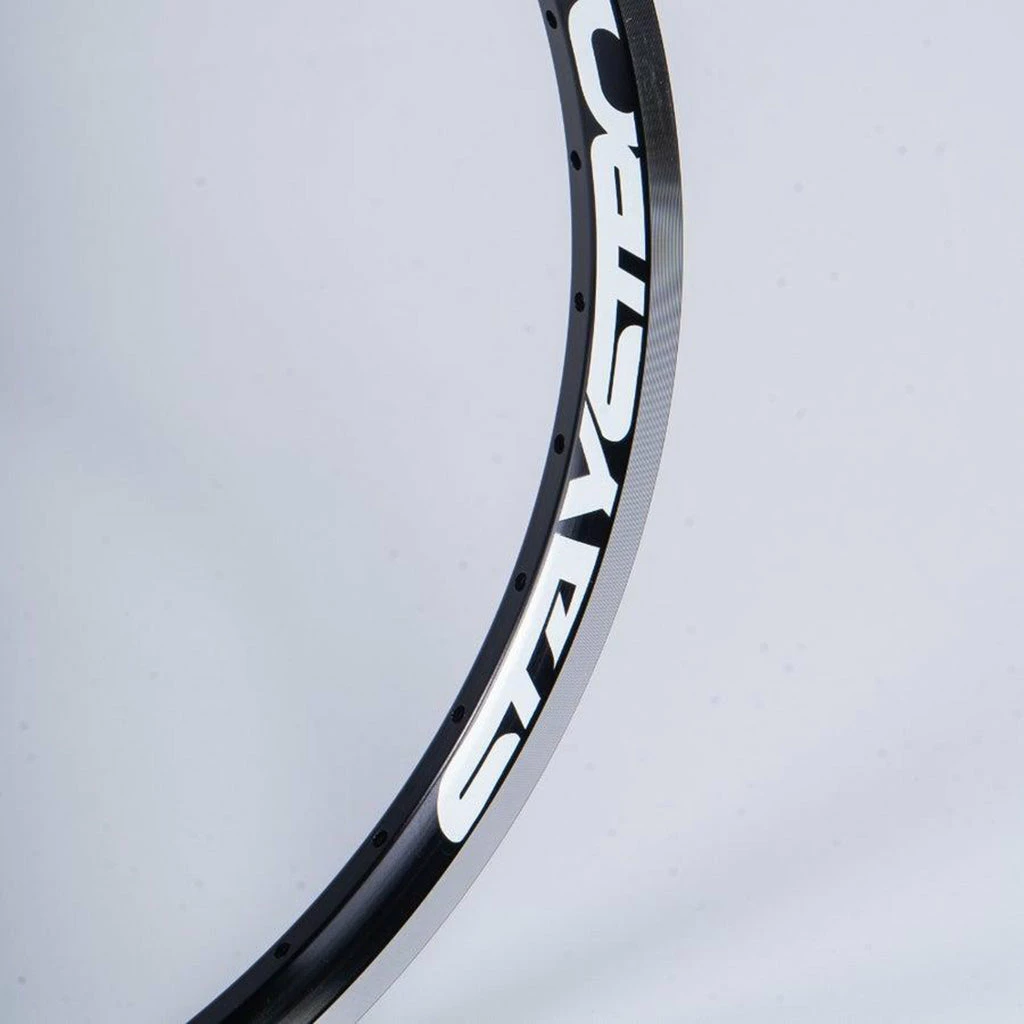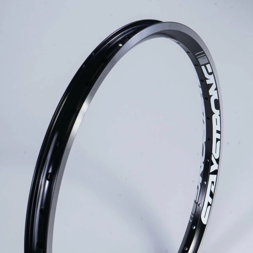 You know that Stay Strong makes the best rims around so why not get in on the good stuff with the Stay Strong Reactiv BMX Race Rim-Rear-24×1.75″ This aero-profile, alloy race rim has a 36 hole pattern and a pinned joint. The white Stay Strong “Cut Off” graphic looks striking on the black anodized metal. This rear rim has a CNC braking surface for caliper style brakes.