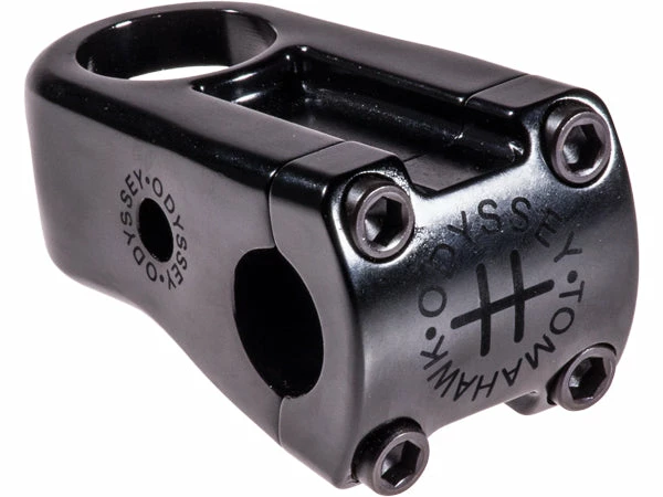 The Odyssey Tomahawk front load BMX stem is the signature stem of Chase Hawk. Forged from 6061-T6 aluminum with grooved top and bottom cut outs makes this stem durable yet light weight.