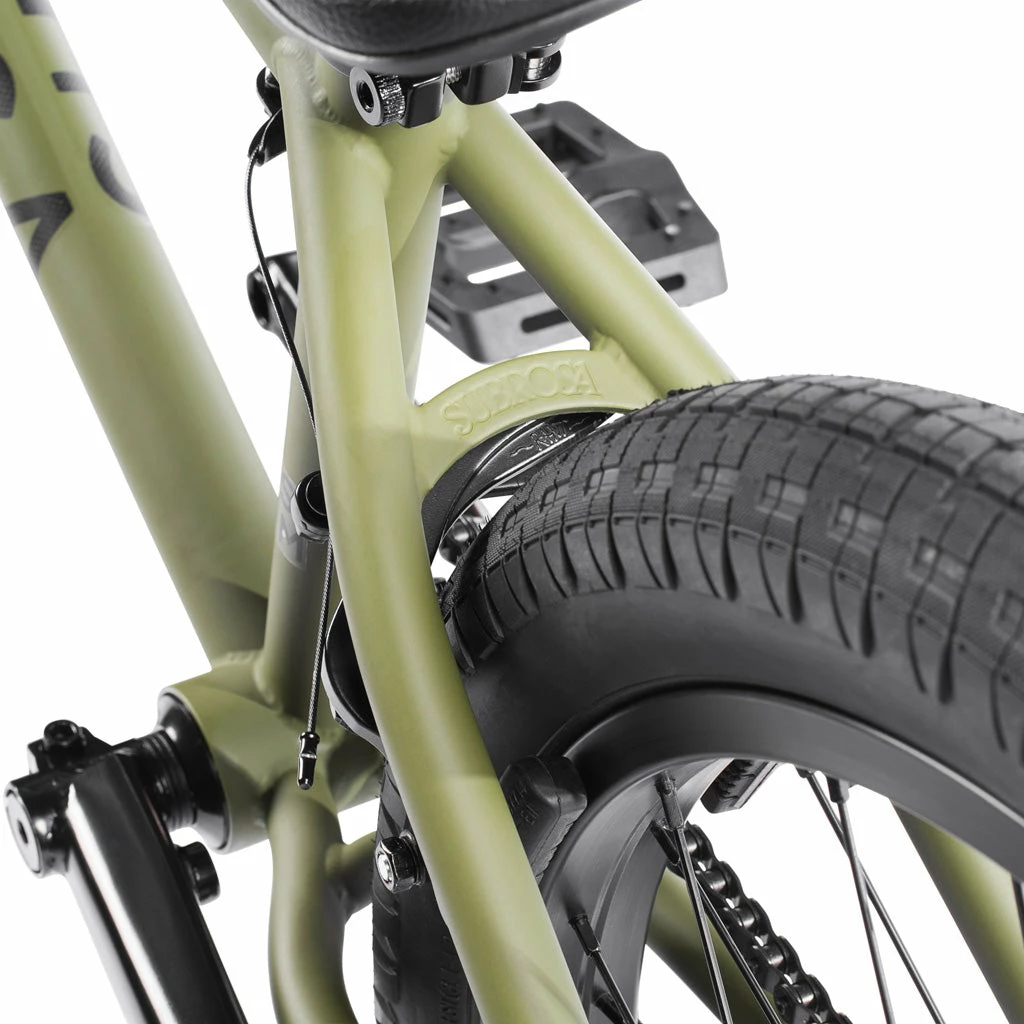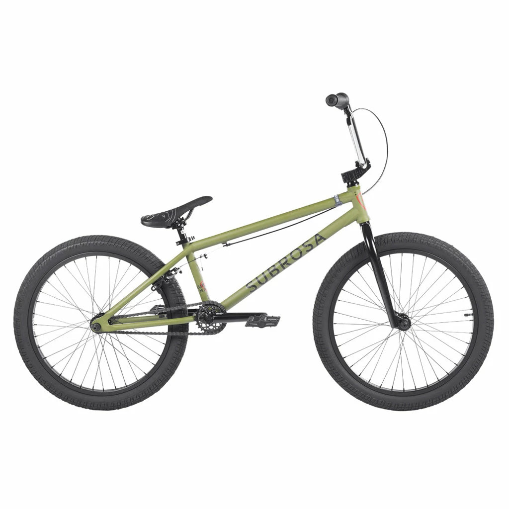 The Subrosa 2022 Malum 22″ BMX Freestyle Bike-Army Green offers all that the 21 inch Malum can give, but at a longer top tube length. The 22 inch top tube is great for larger riders, or riding bowls or trails. It offers great stability and will keep up with you at speed. With a frame, handlebar, and fork all 100% chromoly this bike will take a serious beating and still make that next trick. Thoughtfully features a bunch of aftermarket parts from Rant and The Shadow Conspiracy. Rant Squad rims connected to Rant Party On sealed hubs. Shadow Conspiracy chain, pedals, and seat.
