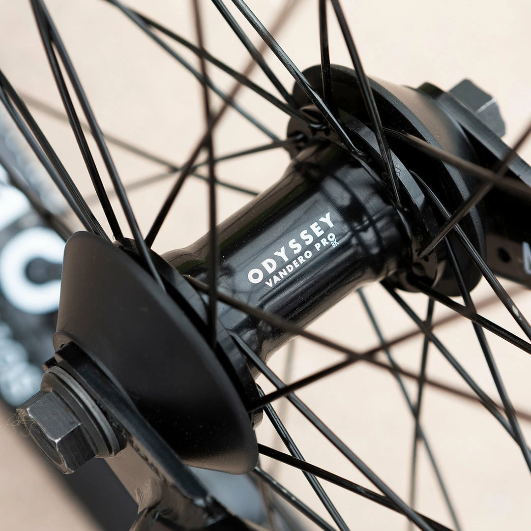 - Front Hub: Odyssey Vandero Pro, 36H, sealed, 3/8″ female axle, 2 plastic guards
