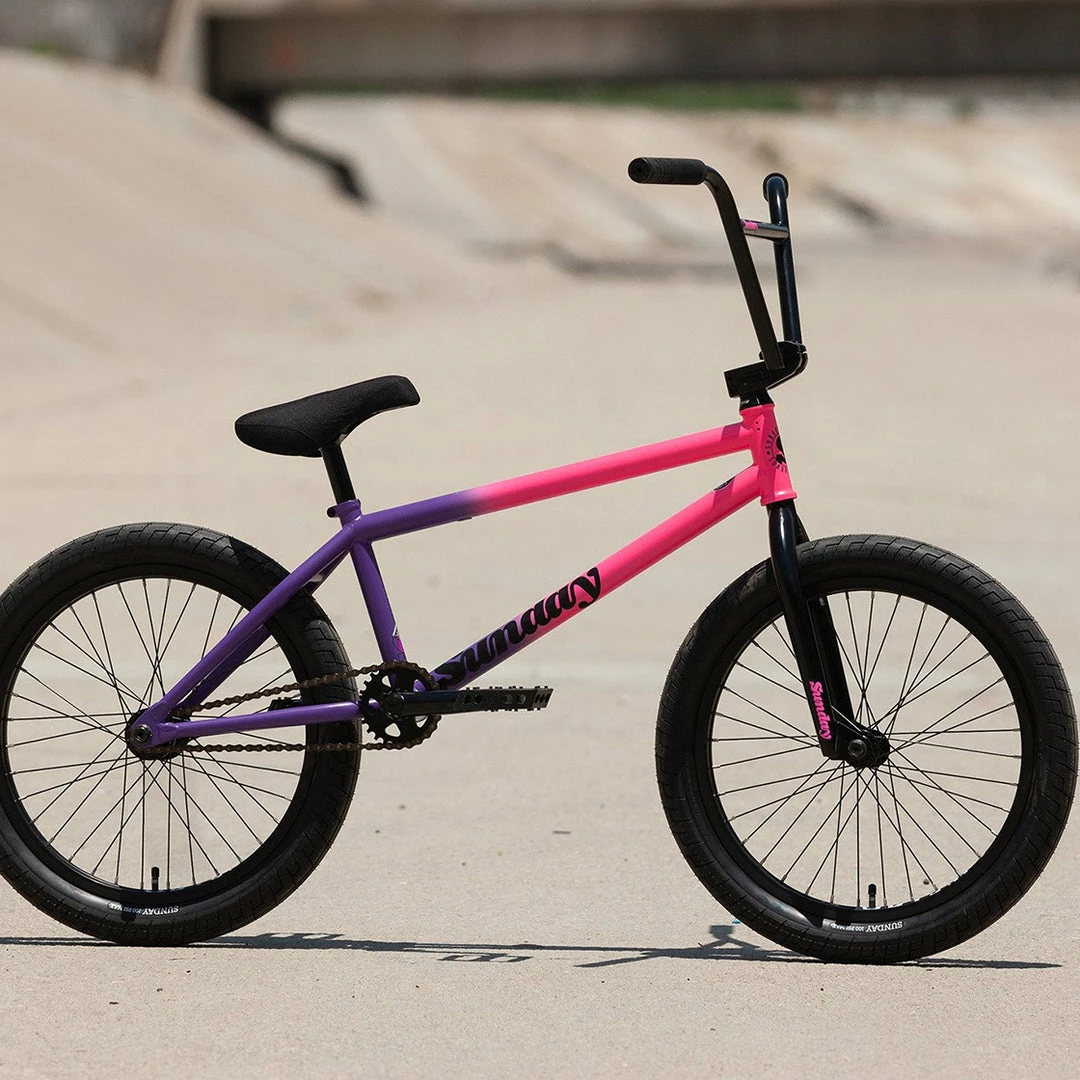 Check out Jake Seeley’s 2022 signature complete bike the Sunday Street Sweeper RHD 20.75″TT BMX Freestyle Bike-Matte Hot Pink/Grape Fade. Sunday started with Jake’s signature frame and made a freestyle monster using a slew of Odyssey aftermarket parts, Sunday Jake Seeley grips, and special to this bike Sunday Street Sweeper v2 tires. The frame’s geometry was chosen specifically to match Jake’s technical riding style and features a profoundly short chainstay and higher bottom bracket. Speaking of the mid bottom bracket we’d love to let you know that it is indeed sealed, as is the low-flange front hub and Odyssey Clutch v2 freecoaster in the back. Would you expect anything less from a bike on this level?