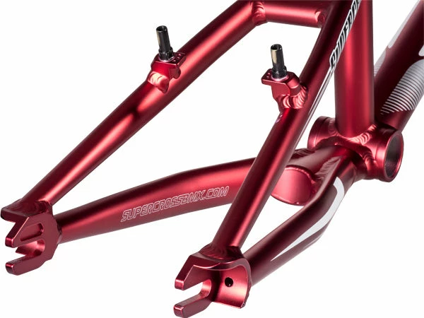 The Supercross BLUR Race Frame is a full seamless 6061 T-6 Aluminum race frame that is welded in fixture, aligned and then aged to a T-4, checked for alignment and then continue aged to a T-6 hardness. The BLUR uses the same World Championship Winning Geometry found on all of their race frames including the Supercross ENVY, just at a more affordable price.