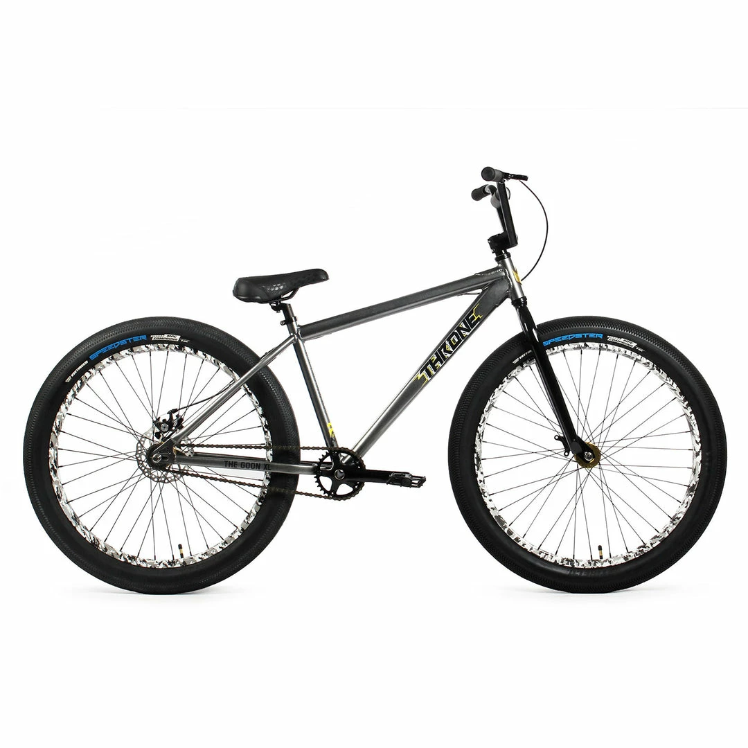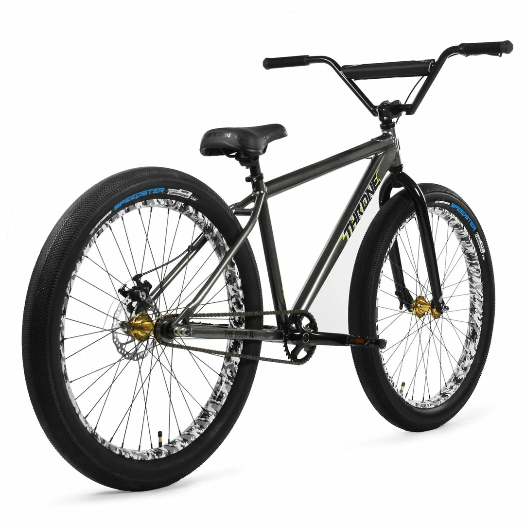 The Throne Cycles The Goon XL 27.5+” BMX 2021 Freestyle Bike-Metal Combat is the perfect bike to do wheelies and other freestyle tricks off the radar. Coming in smooth on the throne, but boldly like a goon with the metal combat colorway. No wonder why the Goons say they run the streets. The fat tires totally help maintain balance on this gentle giant. The upgrades from 2020 include improved cranks, seats, and the four-piece handlebar. It is a sturdy handlebar. Here’s to more wheelies in the future. Wheels up.