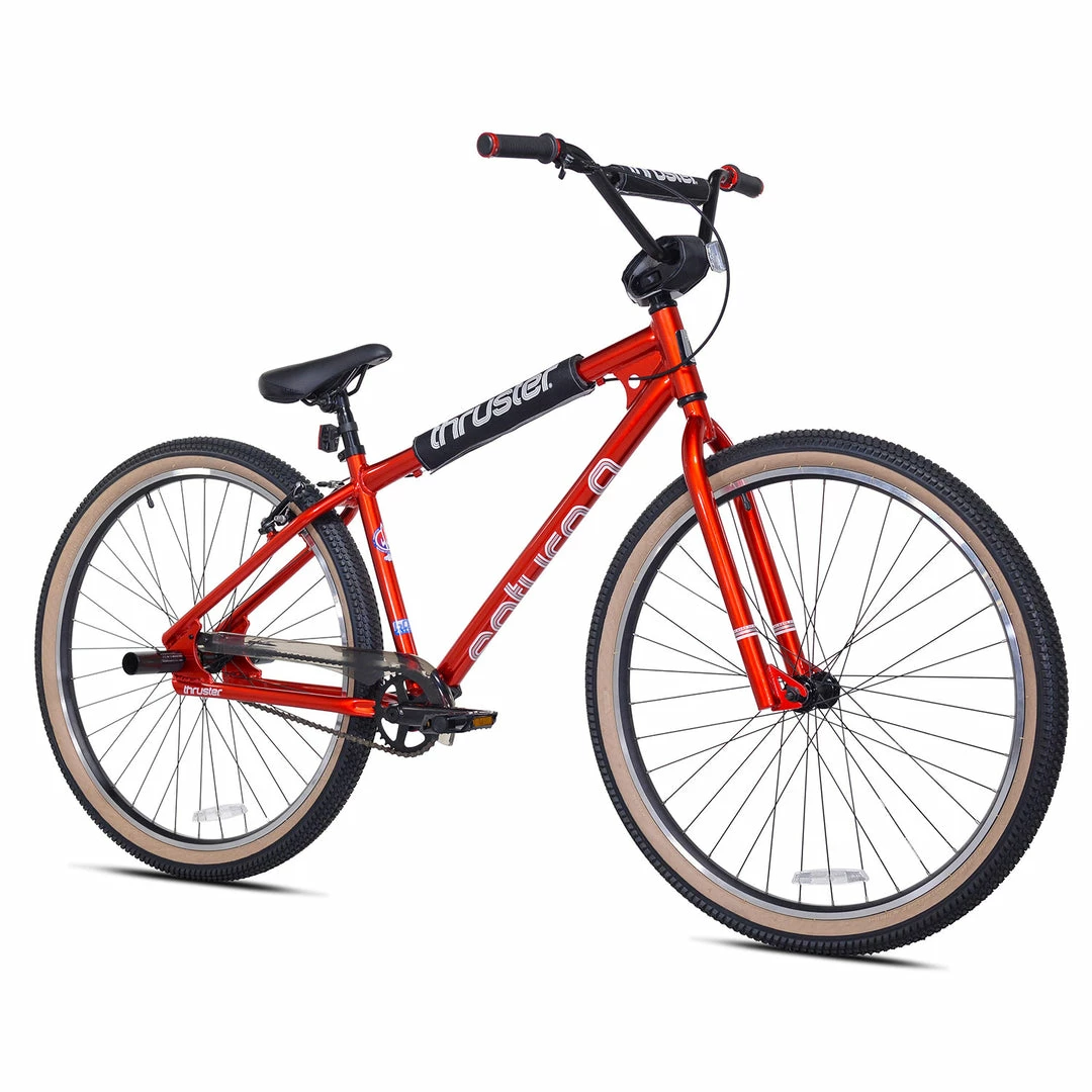 Blast off on the Thruster Saturn 9 29″ BMX Freestyle Bike-Gloss Metallic Red named after the great Saturn 5 rockets that powered man to the moon. Why Saturn 9 and not 5? Well it’s four more than five, isn’t it? You’ll be powering your way to the cosmos with this 6061 aluminum frame, wider than wide 29″ handlebars, and double walled 29″ alloy rims to better handle those lift-off G’s.