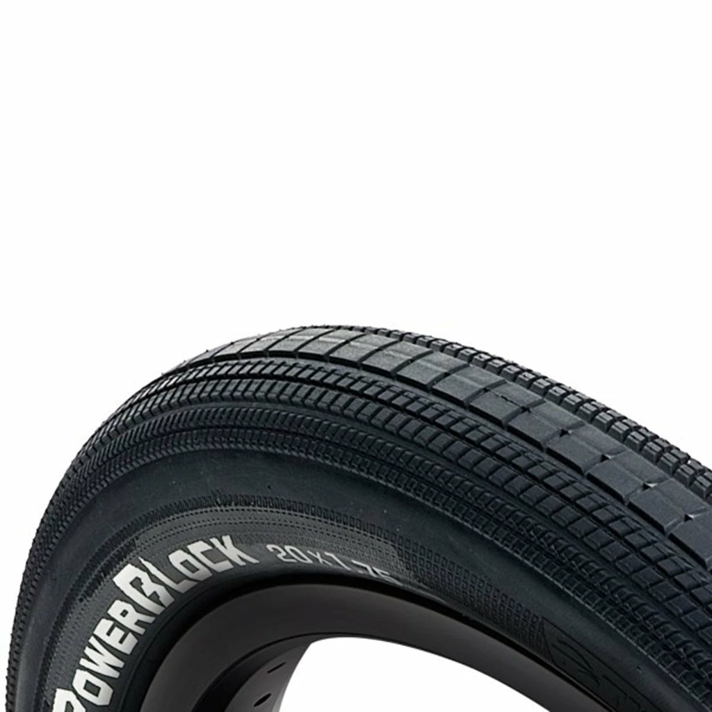 The Tioga PowerBlock Tire-Wire-Black at J&R Bicycles is a hardworking lightweight racing tire built for speed and made available at a budget-friendly price. With the PowerBlock you get all the pro-performance of the S-Spec series but with a thicker and stronger sidewall with steel bead. Side lugs keep you in control around the corners while the smooth center tread offers less resistance on the straight track.