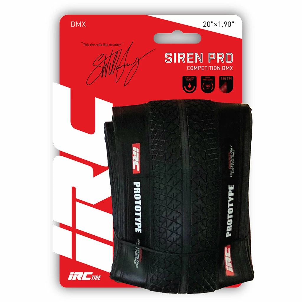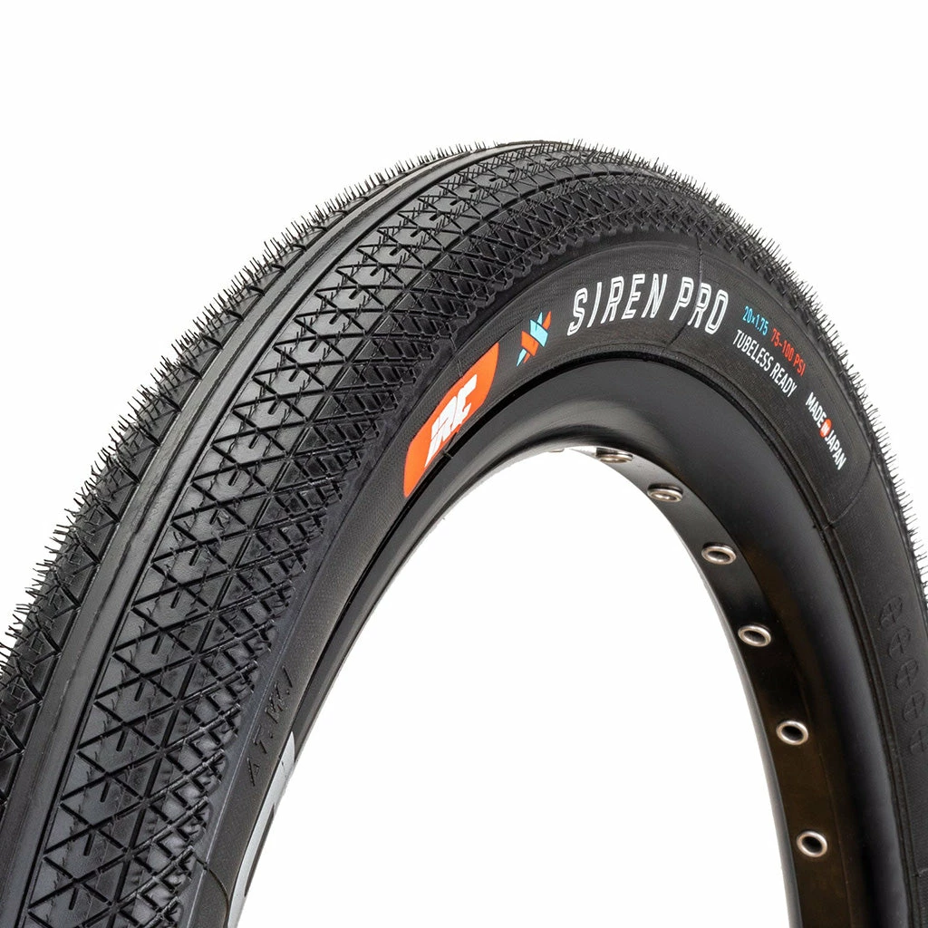 The IRC Siren Pro Folding Tire was designed by the one and only G.O.A.T contender Sam Willoughby, the Siren Pro offers BMX racers unparalleled performance on any track. The lightweight tubeless tire rails the turns and smooths out technical straightaways. The spectacular tread and insane grip holds on tight at the gate and out of the corners. Tires are all about maintaining balance and gaining maximum speed on the track. These tires do just that and with 120 threads per inch, you’ll feel the difference less contact with the ground makes on the straights. Available in both 20×1.75 and 20×1.90 sizes.