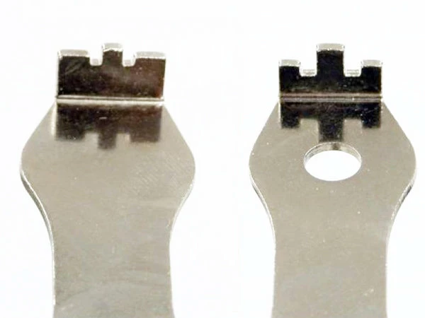The CNW-2 makes chainring bolt set installation and removal easy. It securely holds the slotted nut to prevent spinning when tightening or loosening the bolt. Double-ended to fit most slotted-type nuts.