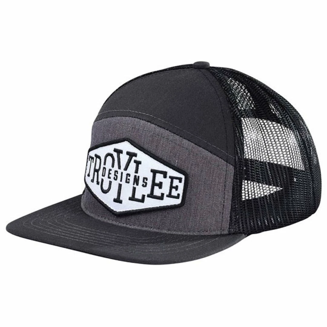 The Troy Lee Designs Breakout Hat features split-panel, flat visor snapback Polyester/ Cotton Twill. High-Density woven patch at front, contrast color panels and visor, plastic adjustable snapback and TLD flag label at back.