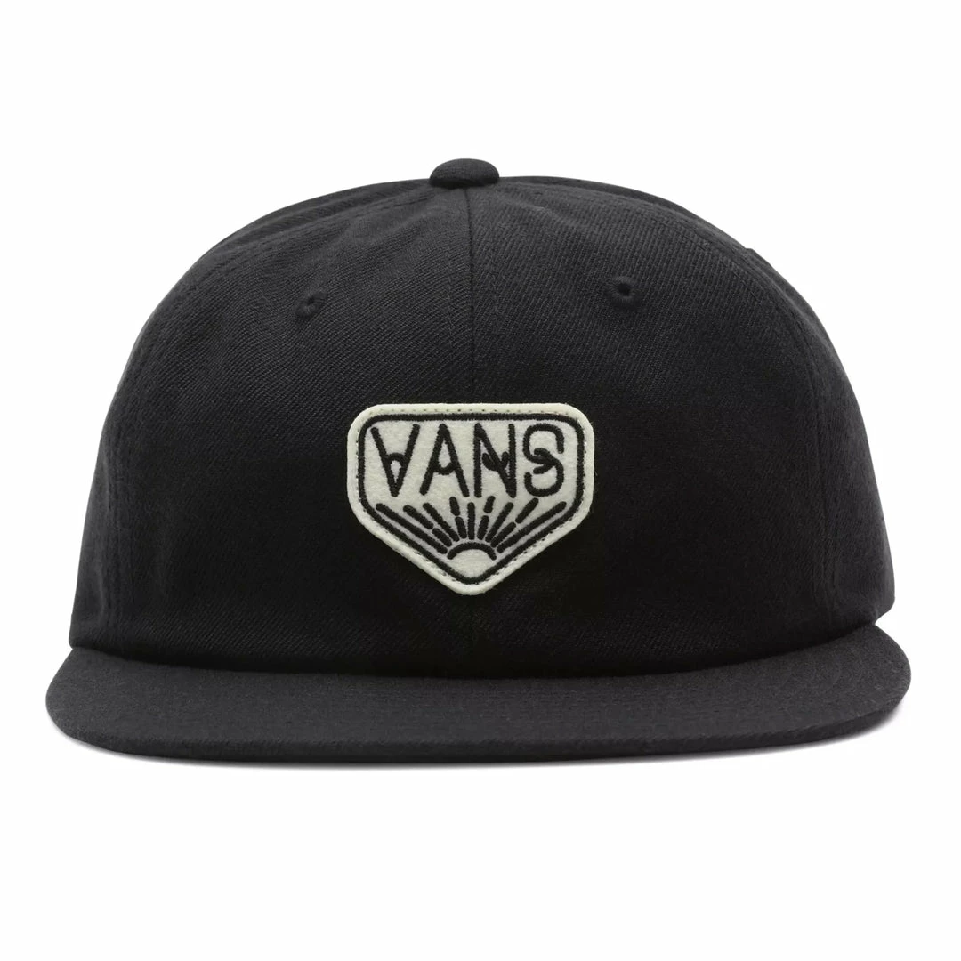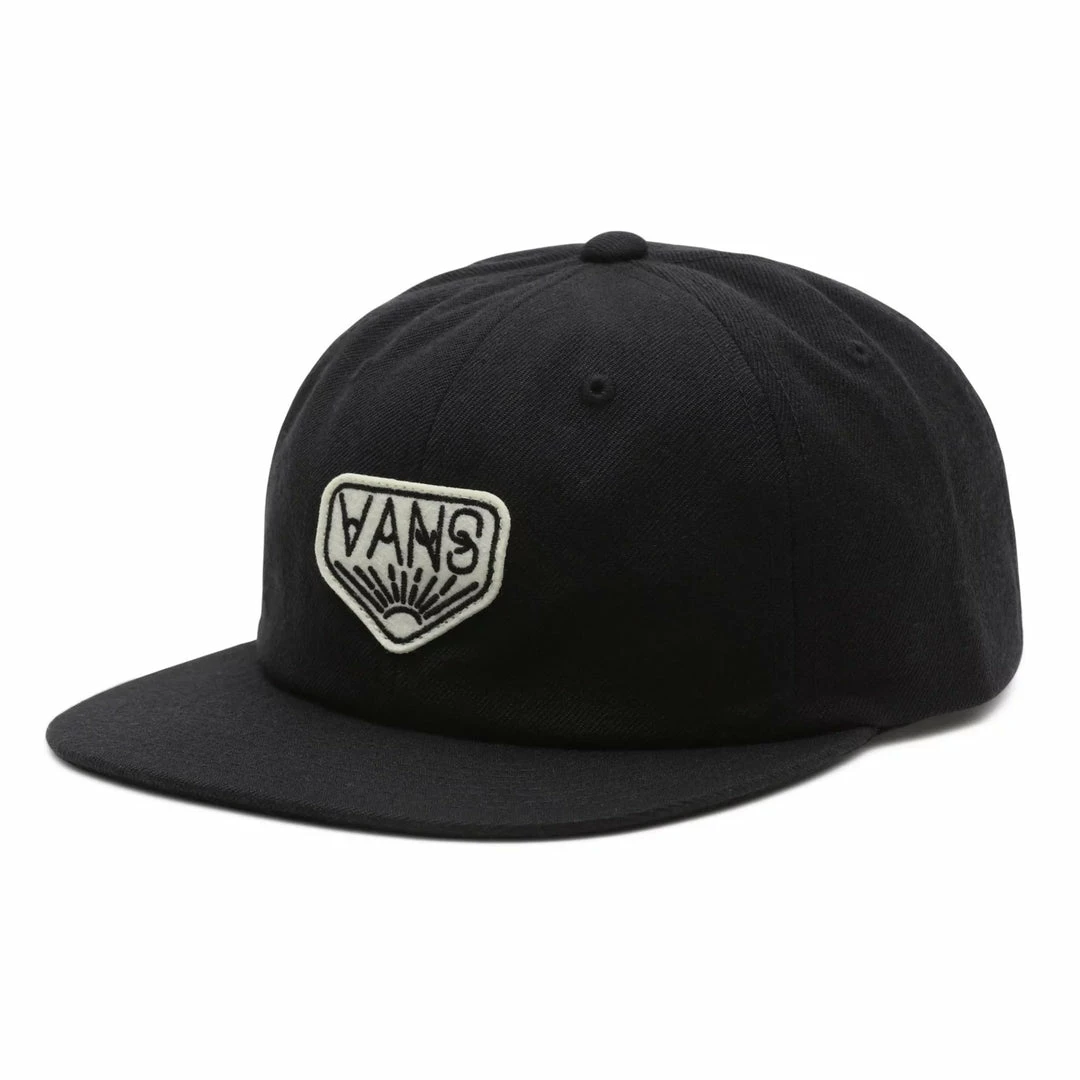 Vans Dr Vintage Unstructured Hat-Black comes with a vintage Vans sunrise logo patch, durable plastic snaps, and is made comprised of 80% acrylic/20% wool.